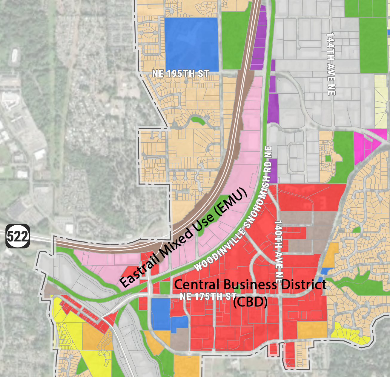 Woodinville is facing rapid transformation under a pro-development City Council that prioritizes high-density growth over solutions to rising costs, traffic congestion, and transportation challenges. Instead of addressing these issues, the Council is aggressively pushing forward the Eastrail Mixed-Use (EMU) district, a large-scale redevelopment initiative that will reshape 45 acres of General Business (GB) land at a massive cost to residents and the character of our community.